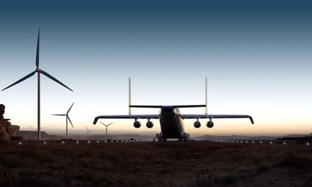 Chamado de WindRunner, o avião seria capaz de transportar até 74 toneladas, mas só conseguiria voar dois mil quilômetros Imagem: reprodução/Radia Compartilhe esta matéria Já imaginou...