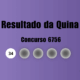 O sorteio do concurso 6756 da Quina, com prêmio de R$ 696,87 mil, foi realizado na noite deste sábado (14), direto do Espaço da Sorte, na Avenida Paulista, em São Paulo...