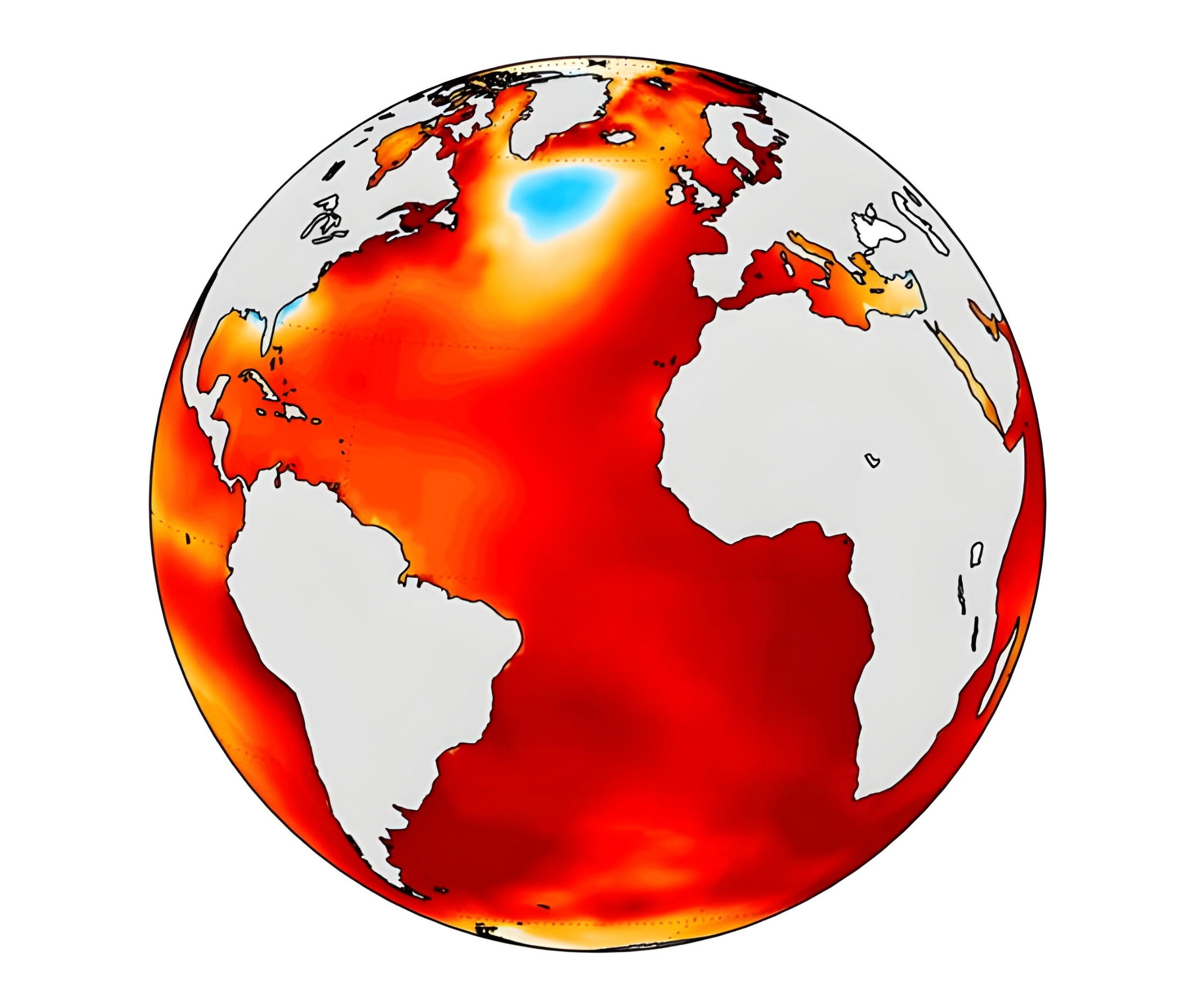 Mancha fria no Atlântico Norte intriga cientistas e pode gerar consequências para o clima global (Imagem: Kai-Yuan Li/University of California Riverside)