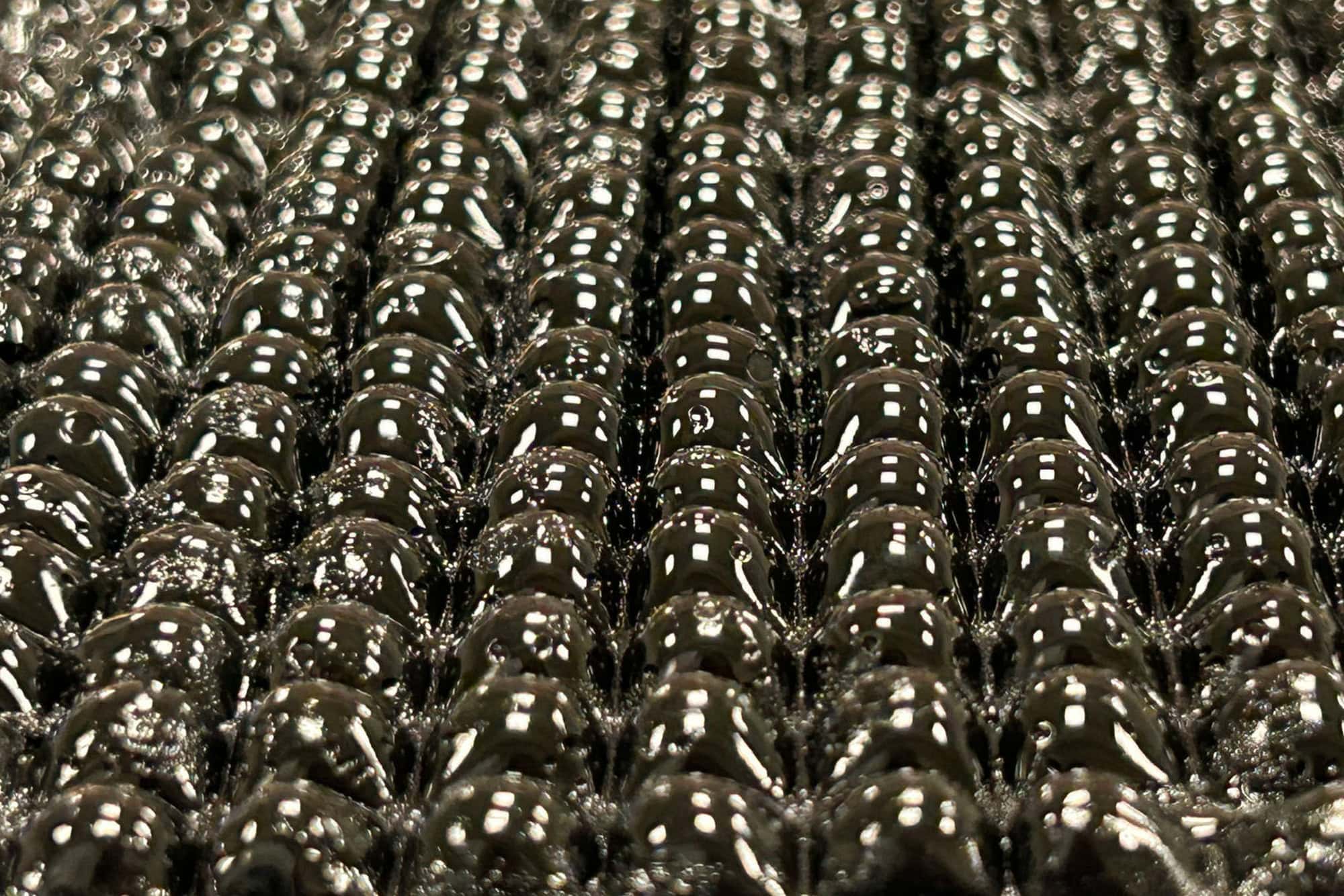 O sistema desenvolvido pela equipe do MIT é composto por um painel vertical preto, feito de um hidrogel absorvente, encapsulado em uma câmara de vidro revestida com um material de resfriamento. O hidrogel lembra um plástico bolha preto, com pequenas estruturas em forma de cúpula que se expandem ao absorver o vapor de água e encolhem novamente ao liberar o líquido.